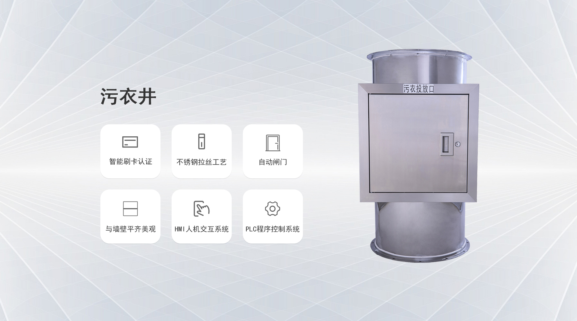 系統簡介:1.污衣井是安裝在建筑內部或者建筑外墻的304不銹鋼管道。高層建筑安裝污衣井后,人們可以直接從樓上投遞污衣到管道內道內...